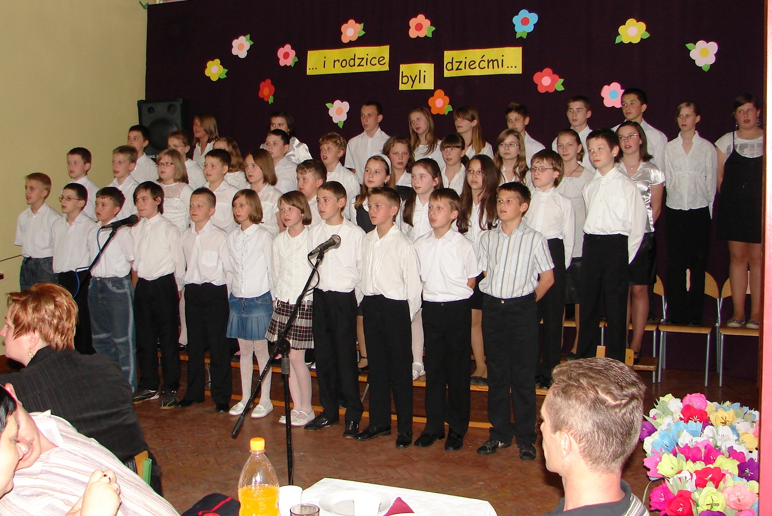 W dniu 27 maja 2010 roku odbył się uroczysty wieczorek rodzinny z okazji Dnia Mamy i Taty. Dzień Mamy i Taty to bardzo szczególne święta dla dzieci w wieku szkolnym. Pozwalają na wspólne przeżywanie radości, okazywanie miłości rodzicom, budzenie poczucia wspólnoty z rodziną, docenianie jej wartości oraz czerpanie radości z bycia razem poprzez czynne uczestnictwo w wieczorku rodzinnym. Dzieci już od dłuższego czasu przygotowywały się do tej uroczystości. W ciepłych słowach ukrytych w wierszach i piosenkach, przekazały co czują i myślą, a własnoręcznie wykonane prezenty i kwiaty, sprawiły wielką radość mamom i tatom. Wśród prezentów były między innymi talony na prace domowe i buziaki, do wykorzystania przez rodziców w dowolnym czasie. Uwieńczeniem uroczystego wieczorku był słodki poczęstunek przygotowany przez dzieci i rodziców. R. Boduch |