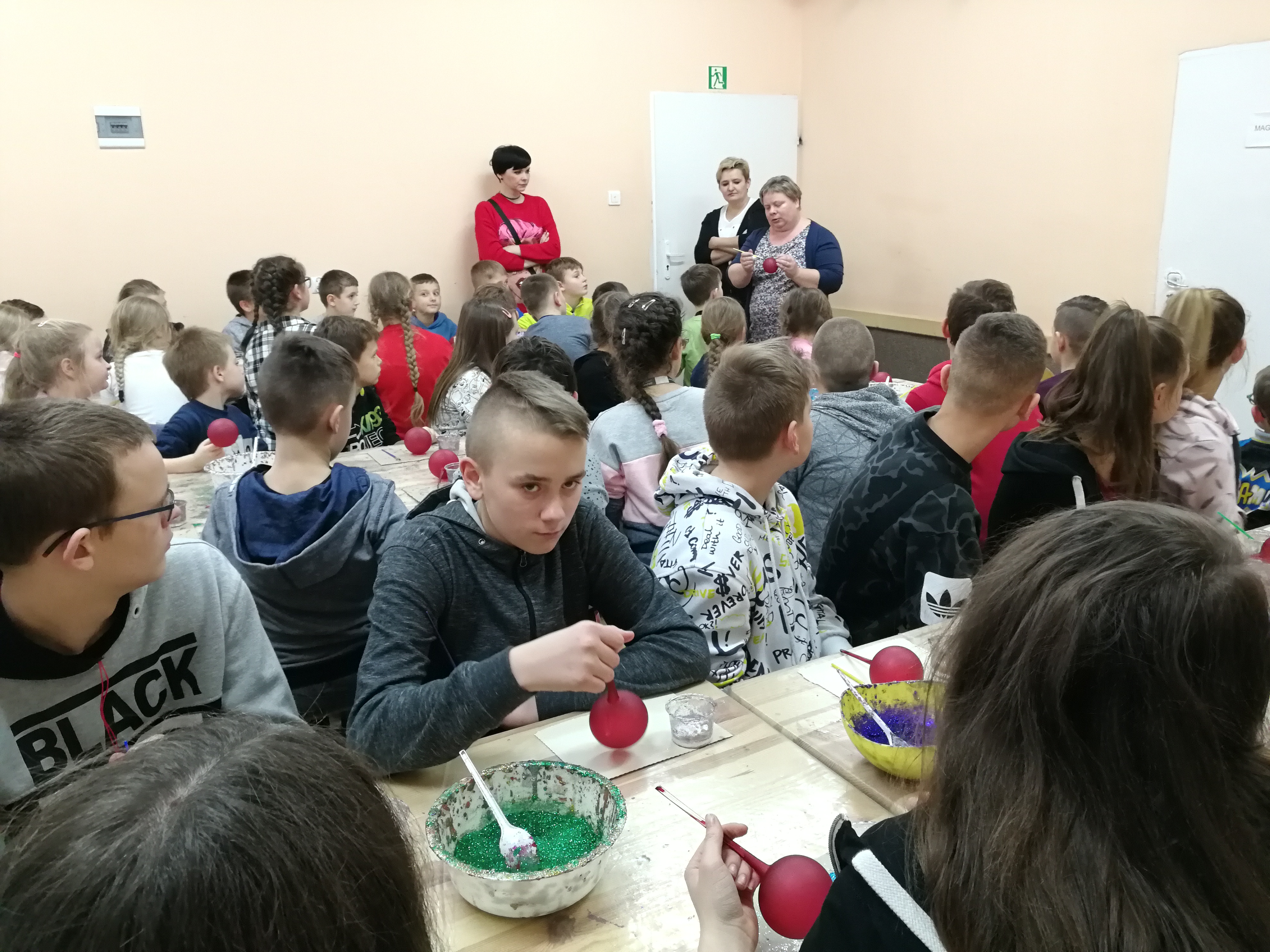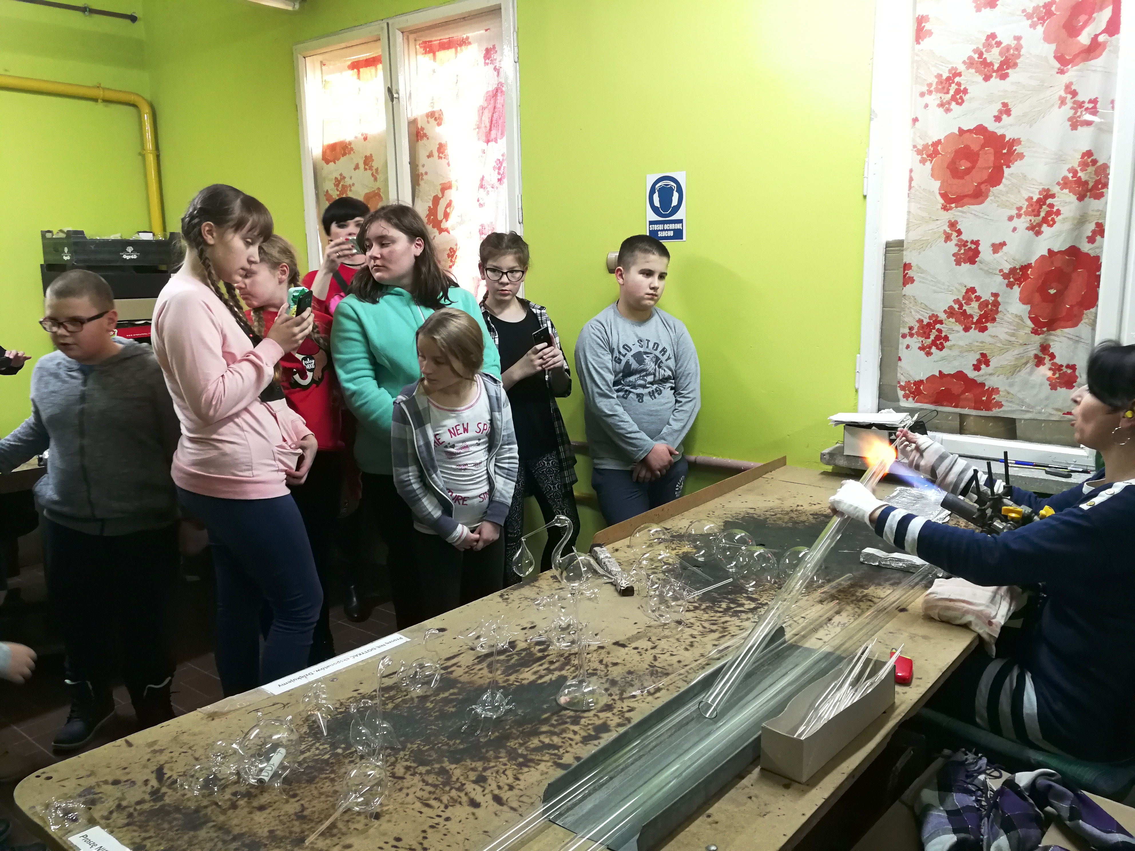 Dzięki realizacji projektu „Klucz do kompetencji w Szkołach Podstawowych Powiatu Namysłowskiego” uczniowie mogli poznać etapy powstawania tych pięknych cudeniek, które zdobią nasze choinki. Pierwszy etap - dmuchalnia, gdzie pracownicy ze szklanej rurki ręcznie wytwarzają przeróżne kształty; drugi etap - srebrzenie, gdzie za pomocą azotanu srebra bombki nabierają lustrzanego blasku; trzeci etap – dekoratornia, gdzie bombki są ręcznie zdobione przez panie dekoratorki. Na zakończenie zwiedzania, przesłaliśmy całusa złotej rybce by spełniła nasze marzenia. Potem obyły się warsztaty zdobienia bombek. Każdy uczeń otrzymał bombkę, którą samodzielnie malował i zdobił, a następnie zabrał ze sobą do domu.