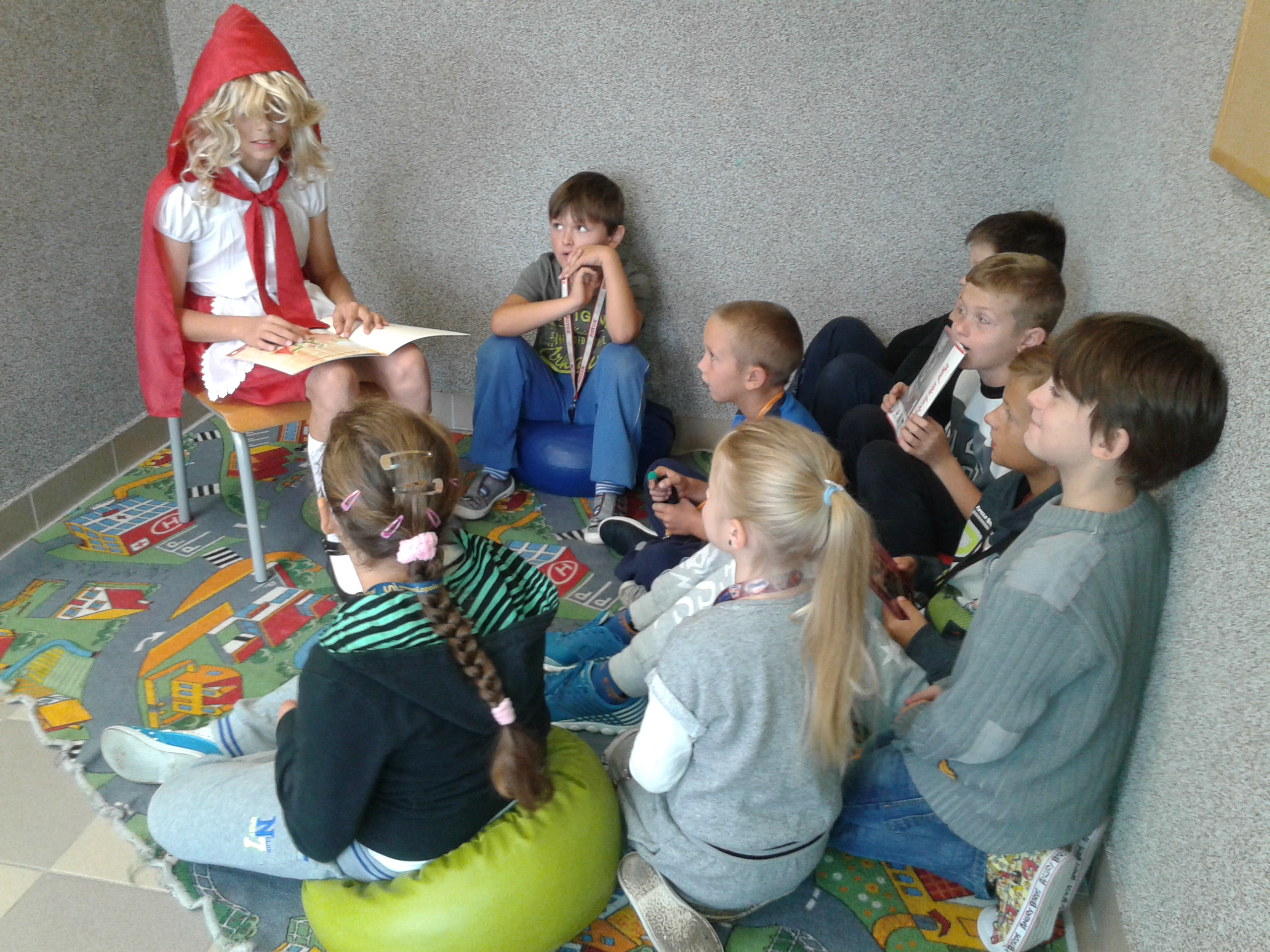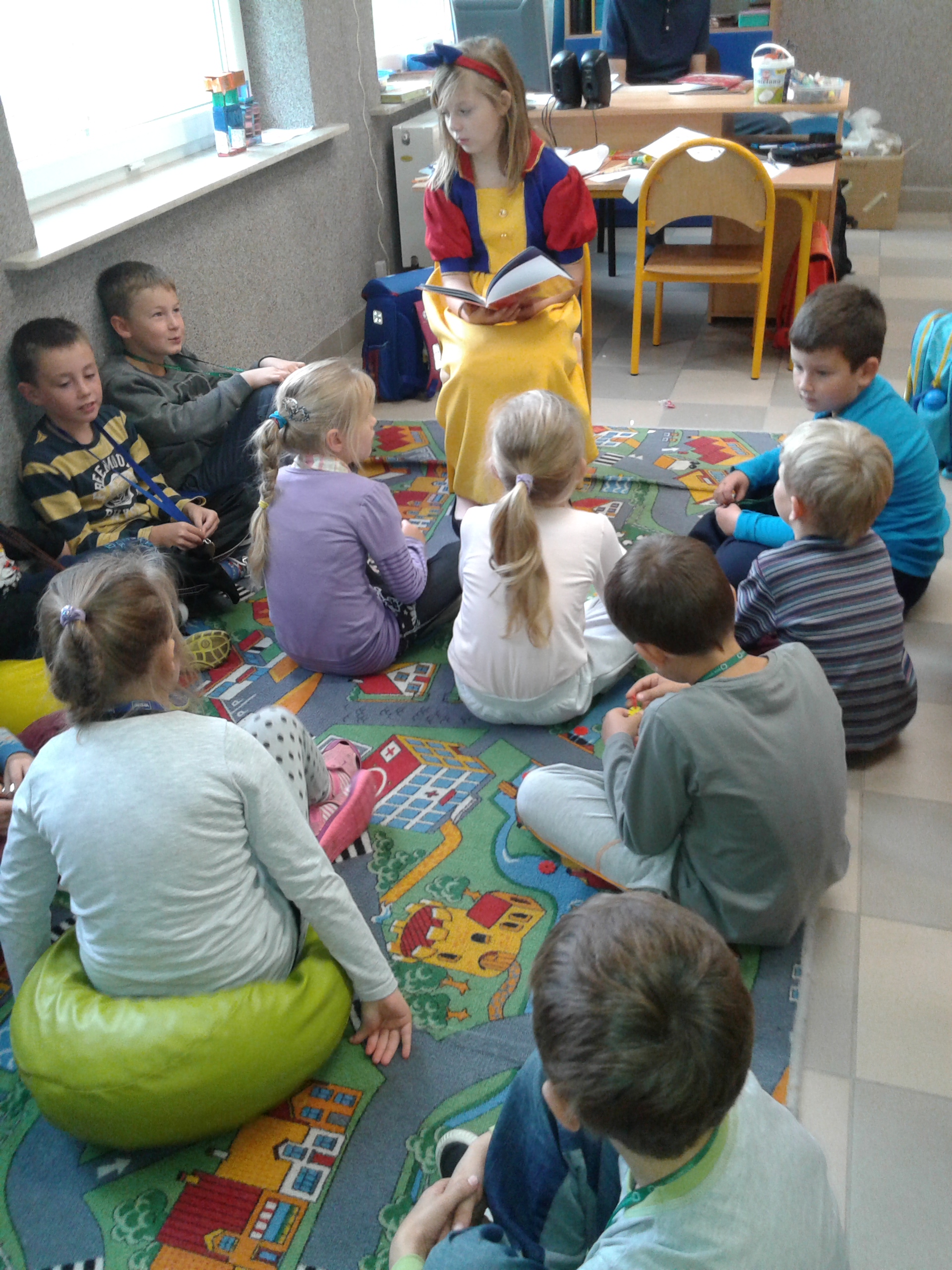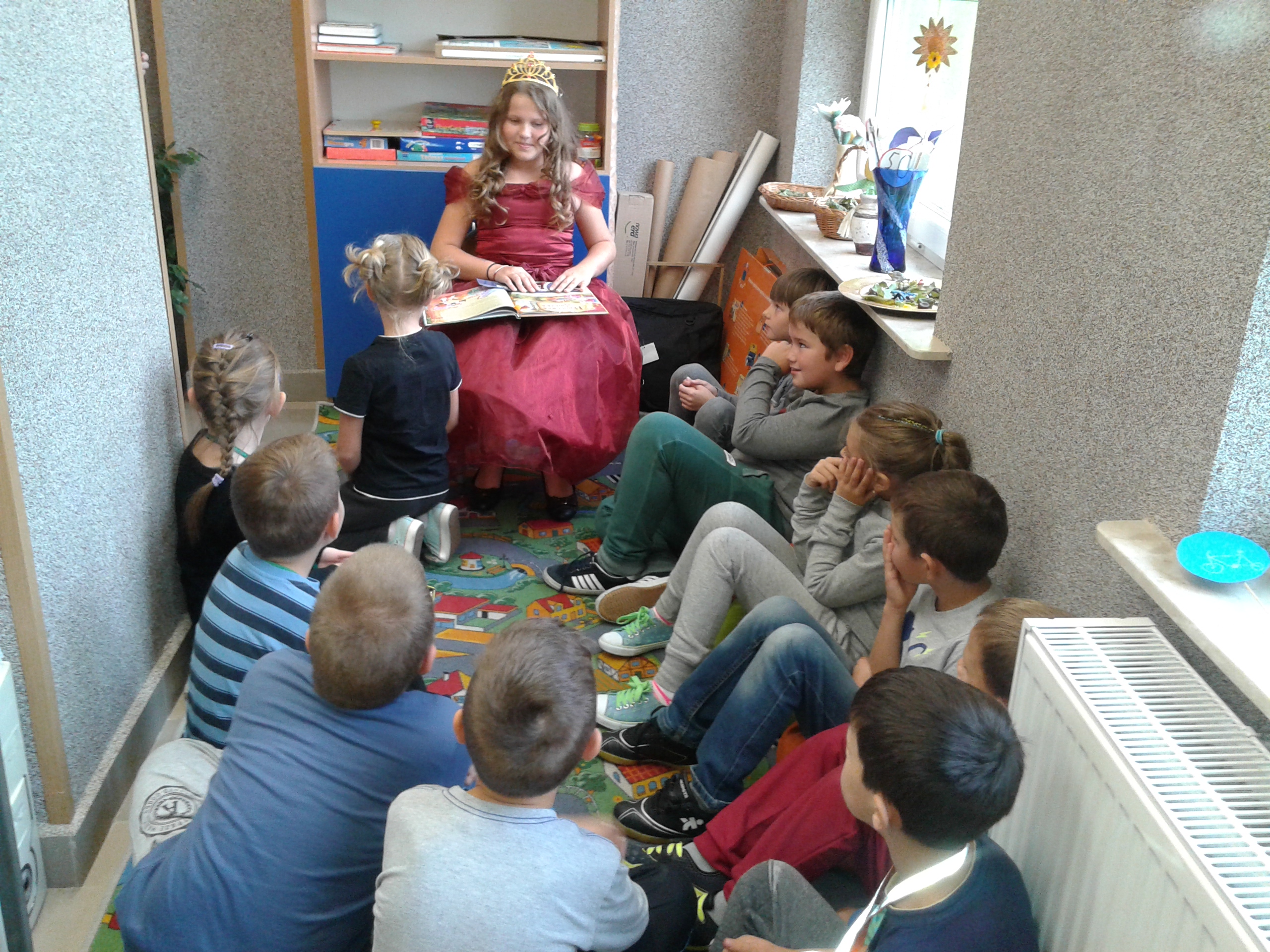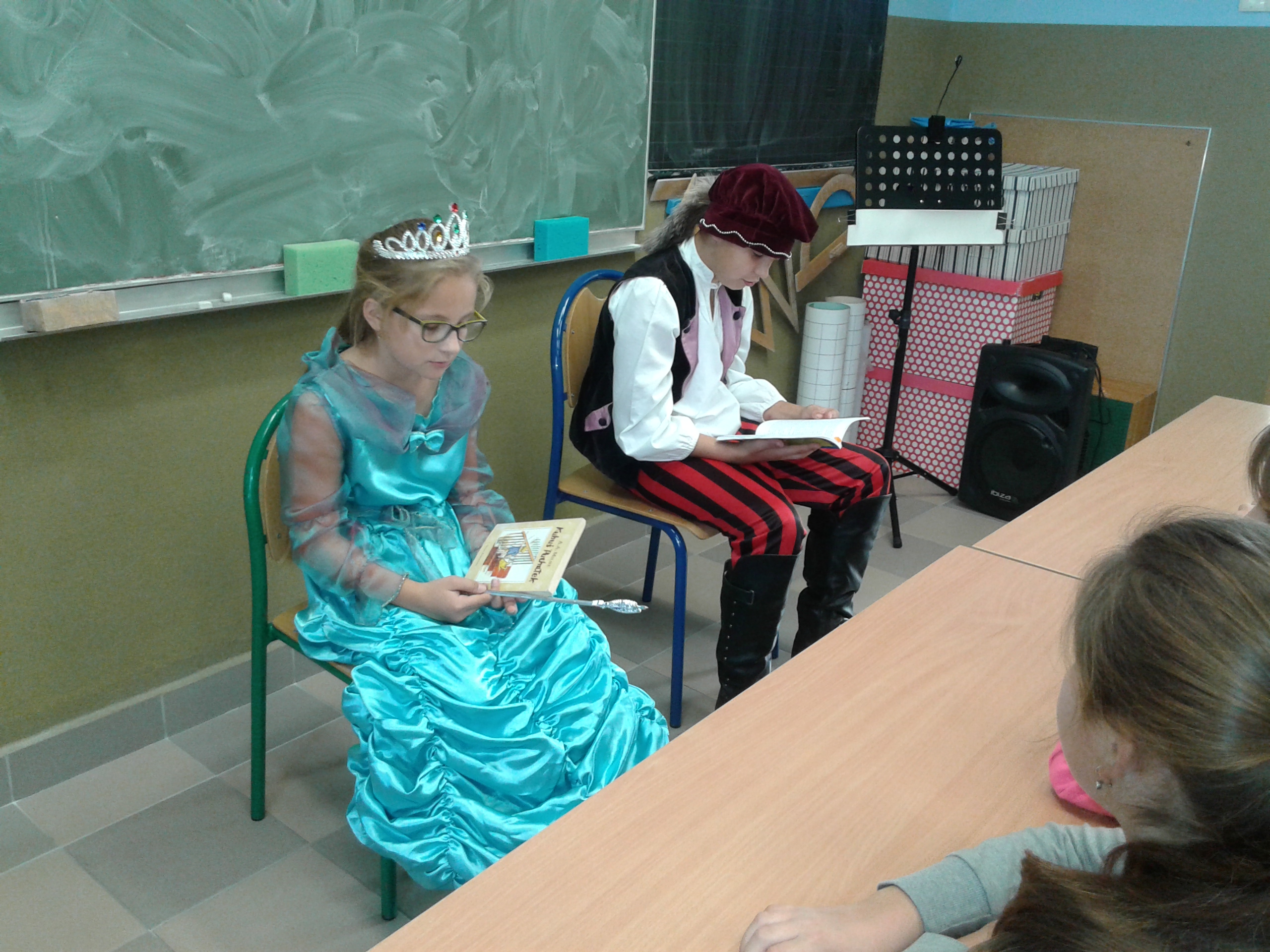 czynności później, kiedy dzieci czytają już samodzielnie. W naszej szkole dzień ten obchodzili wspólnie wszyscy uczniowie. Chętni uczniowie klasy VI czytali wybrane bajki uczniom klas młodszych: