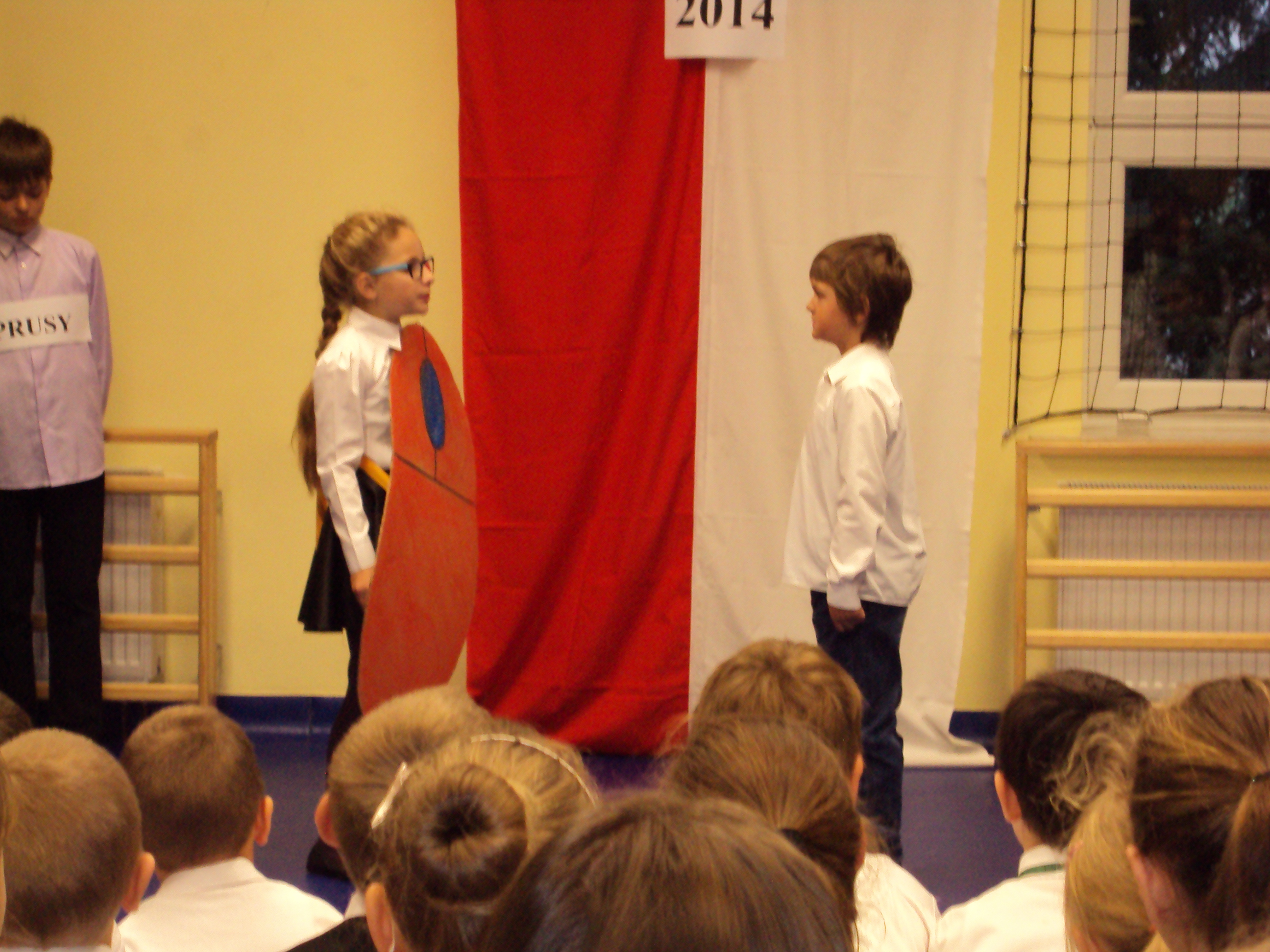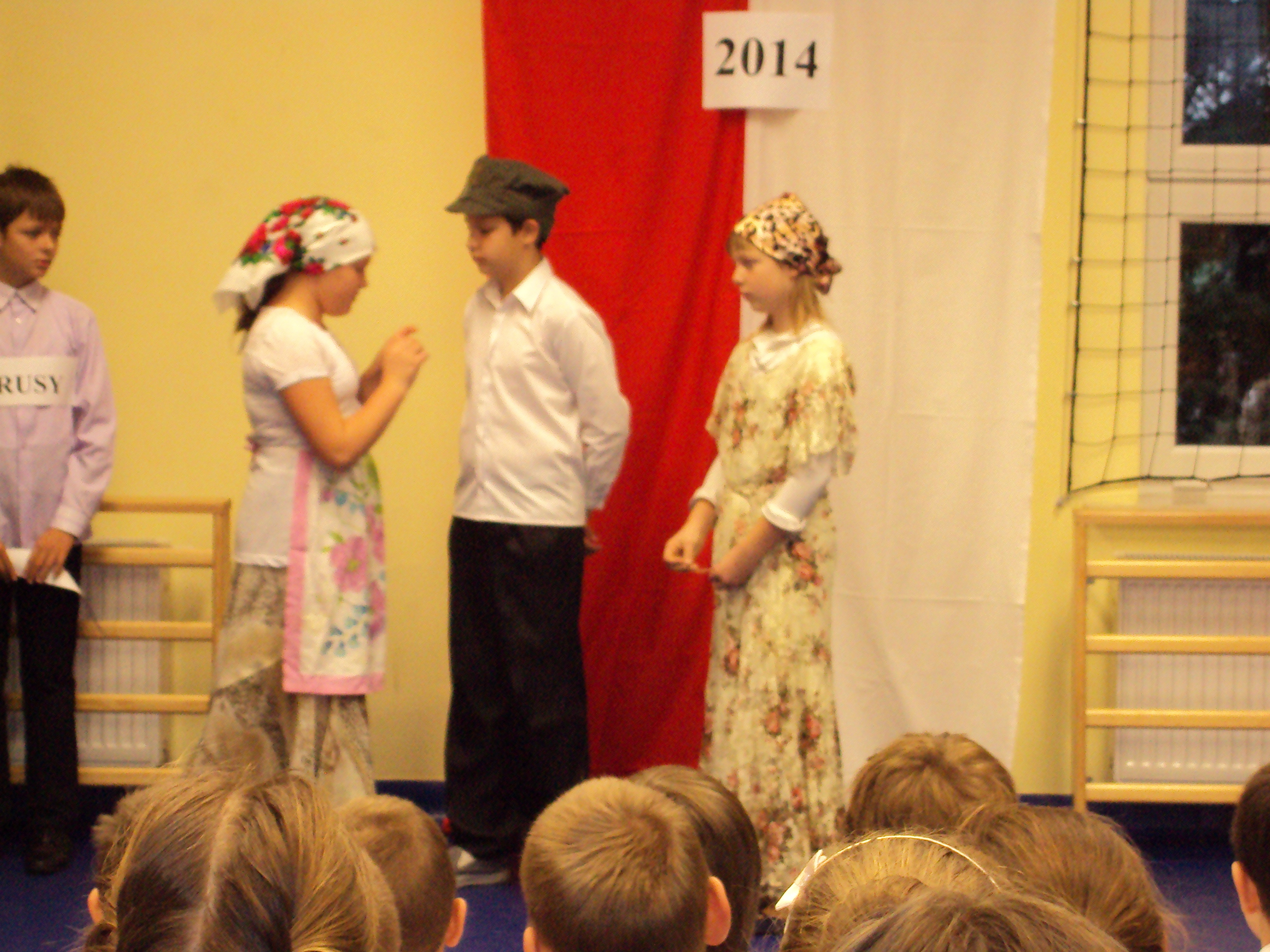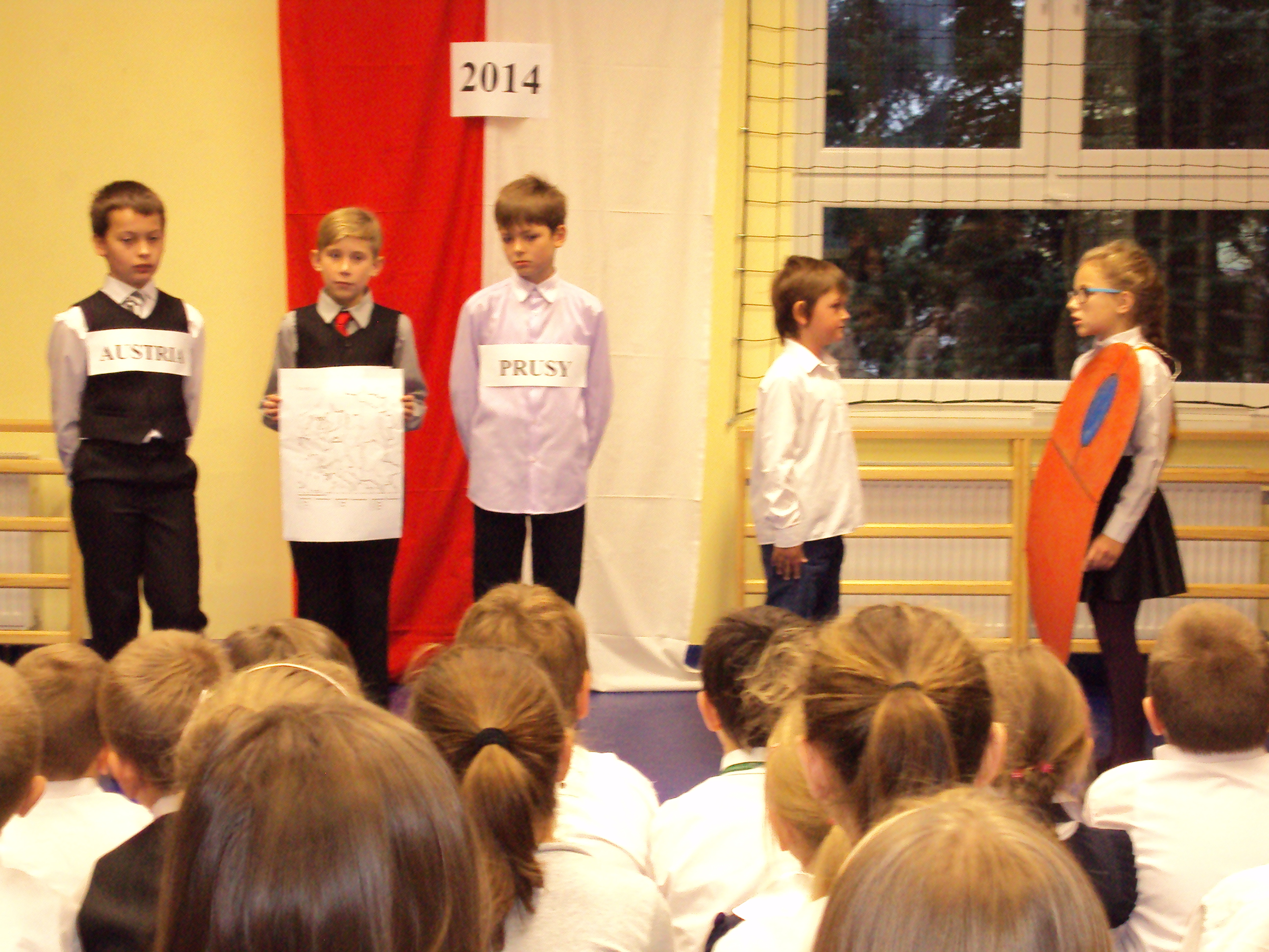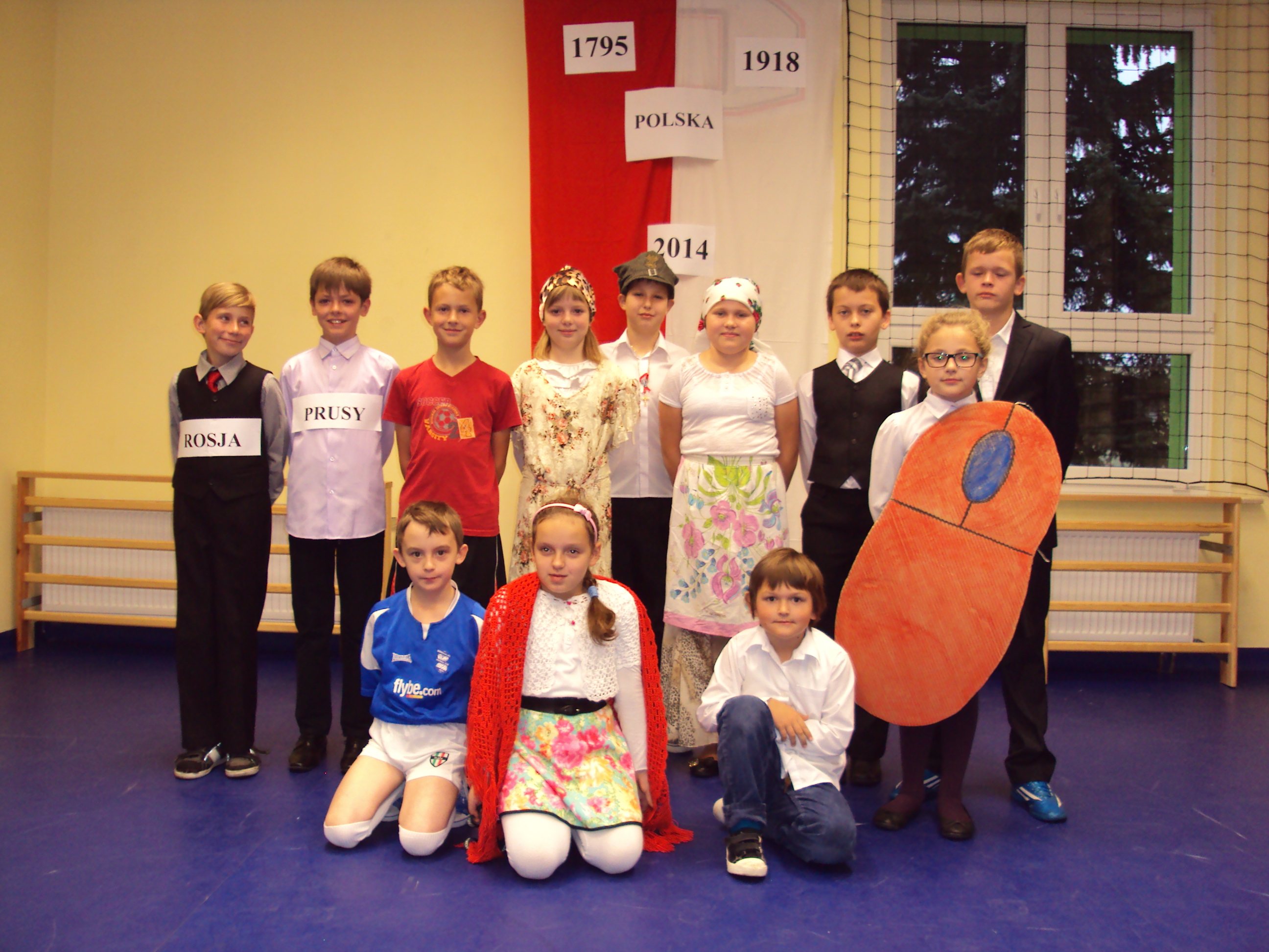 NARODOWE ŚWIĘTO NIEPODLEGŁOŚCI 11 listopada 1918 roku po 123 latach niewoli Polska odzyskała niepodległość. Kraj nasz znów pojawił się na mapie Europy. O tym najważniejszym wydarzeniu z historii naszej Ojczyzny przypomnieli podczas uroczystej akademii uczniowie klasy V i II. Uroczystość rozpoczęła się od odśpiewania hymnu. Następnie główni bohaterowie inscenizacji – uczeń Kuba i myszka komputerowa opowiedzieli uczniom o wydarzeniach związanych z tym świętem. Przypomnieli rozbiory, powstania narodowo-wyzwoleńcze, bunt dzieci we Wrześni oraz I wojnę światową i postać marszałka Józefa Piłsudskiego. Całość przeplatały pieśni patriotyczne. Inscenizacja okazała się wspaniałą lekcją historii.