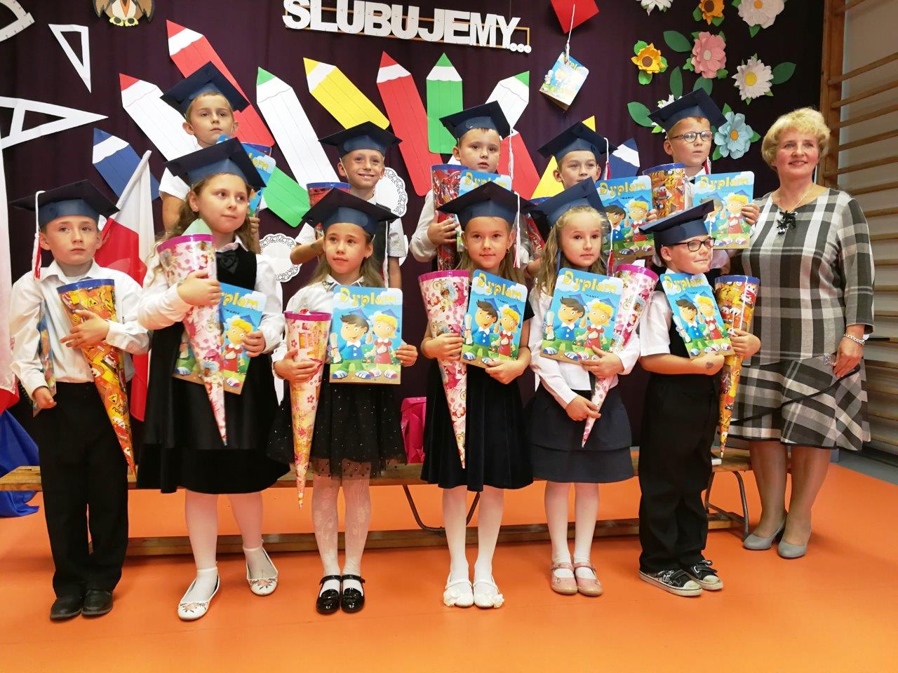 Jedną z pierwszych chwil w życiu każdego dziecka, na którą czeka z wielkim niepokojem, jest rozpoczęcie nauki w klasie pierwszej. Uroczystość ślubowania jest tego najlepszym przykładem. Podczas ślubowania i pasowania pierwszoklasistów pierwszaki pokazały czego już zdążyły się nauczyć, prezentując program artystyczny. Uczniowie złożyli uroczyste ślubowanie, że godnie będą reprezentować naszą szkołę. Następnie przewodnicząca Samorządu Uczniowskiego – Maja Szynklarz, pasowała dzieci na uczniów Szkoły Podstawowej im. Stanisława Moniuszki w Bąkowicach, oficjalnie włączając do społeczności uczniowskiej. Każde dziecko otrzymało pamiątkowy dyplom oraz od rodziców ,,słodki rożek obfitości”, a dyrektor Cezary Zając życzył uczniom sukcesów na dalszej drodze edukacyjnej. Drugą częścią uroczystości był Dzień Edukacji Narodowej. Dzieci z klasy drugiej i trzeciej złożyły nauczycielom i pracownikom naszej szkoły podziękowania za trud włożony w edukację i wychowanie. Na koniec uroczystości były pamiątkowe zdjęcia, a po nich słodki poczęstunek przygotowany przez rodziców uczniów klasy pierwszej. Ten dzień na pewno pozostanie w pamięci każdego pierwszaka. PIERWSZAKI - witamy na pokładzie! Wyruszamy razem w rejs, aby poznać nieznane obszary wiedzy, spotkać nowych przyjaciół i przeżyć wiele klasowych przygód, które na pewno pozostaną Wam w pamięci..., aby po latach z łezką w oku wspominać te chwile..., chwile spędzone w naszej szkole. Powodzenia!