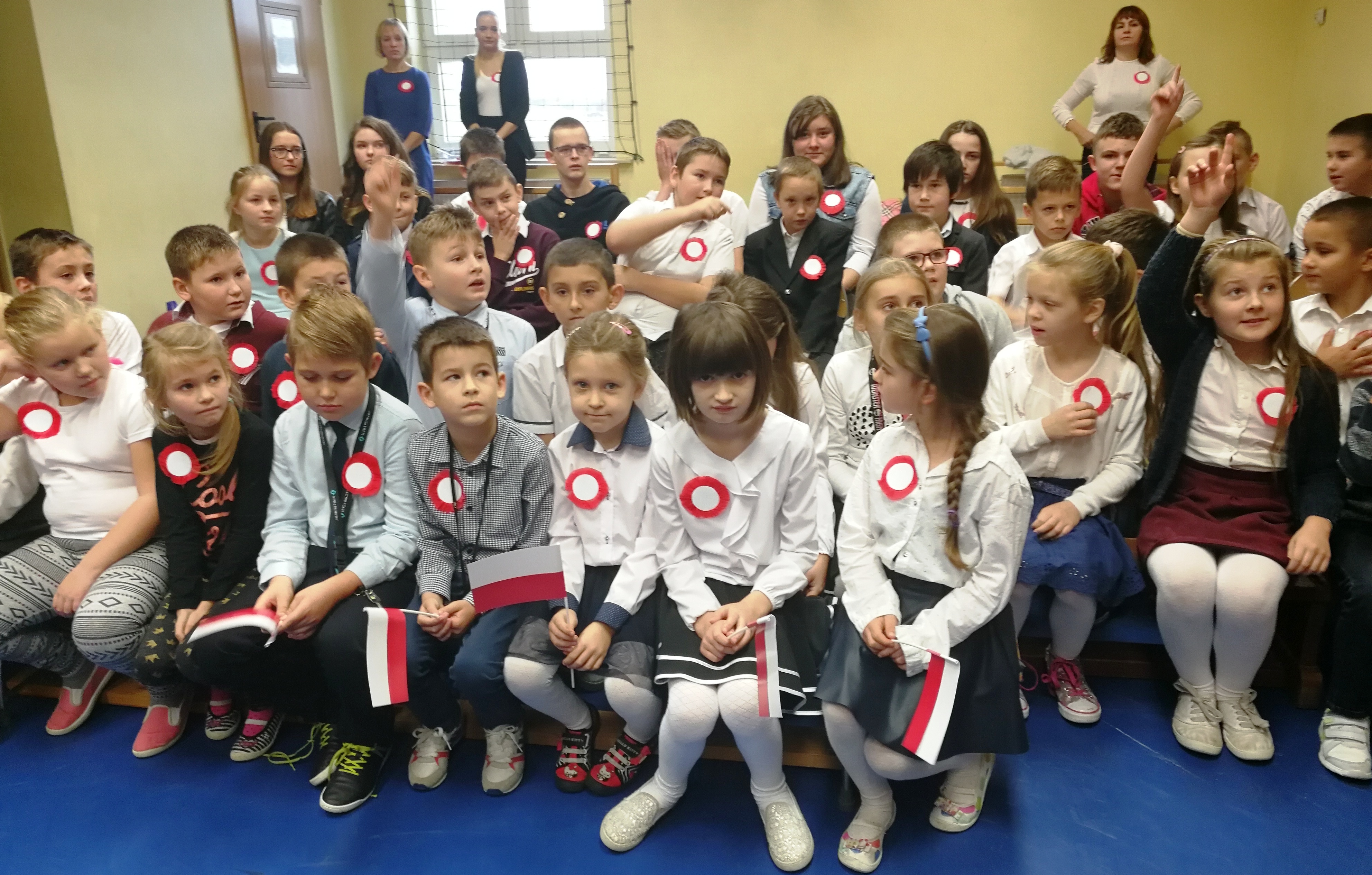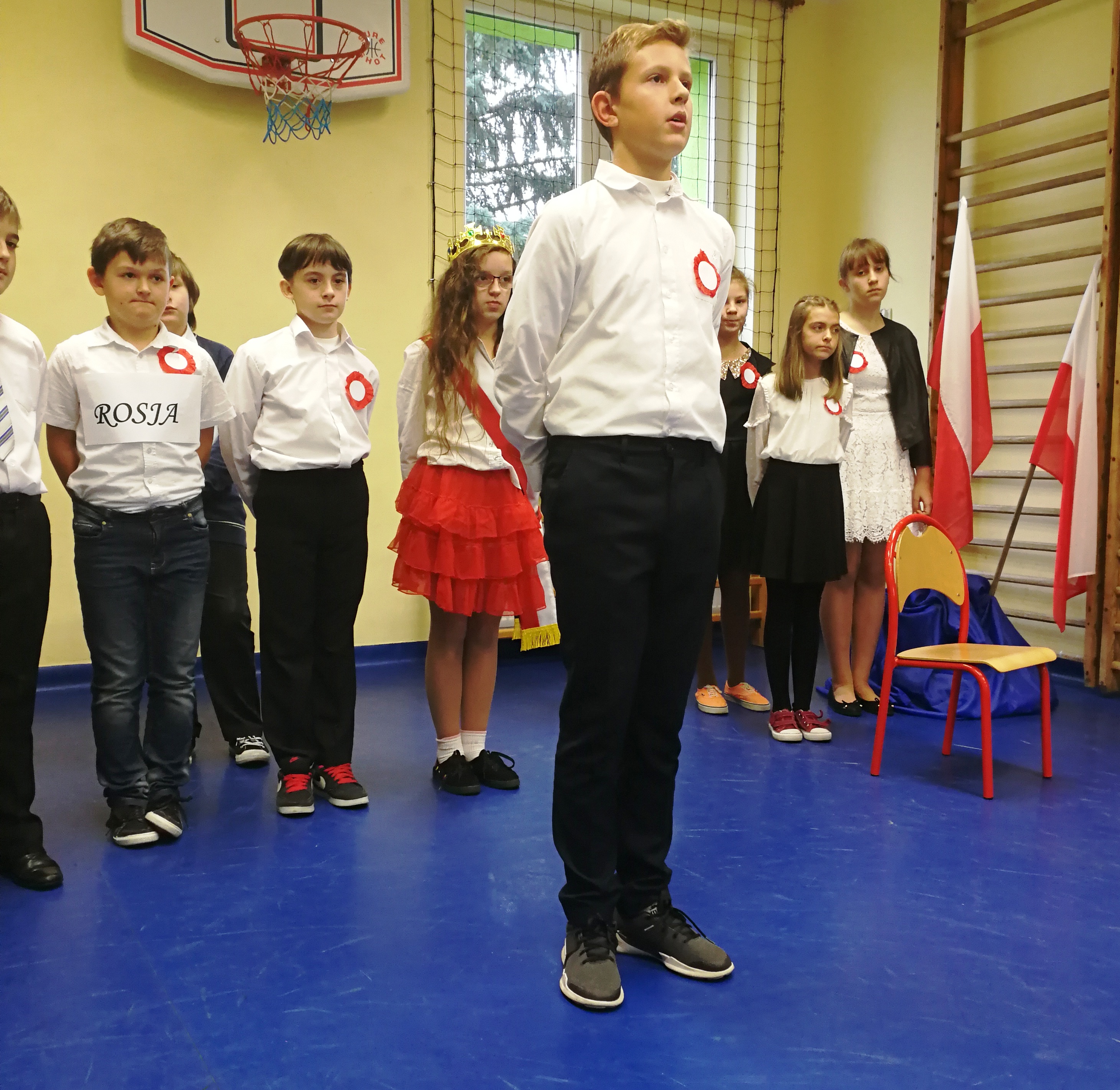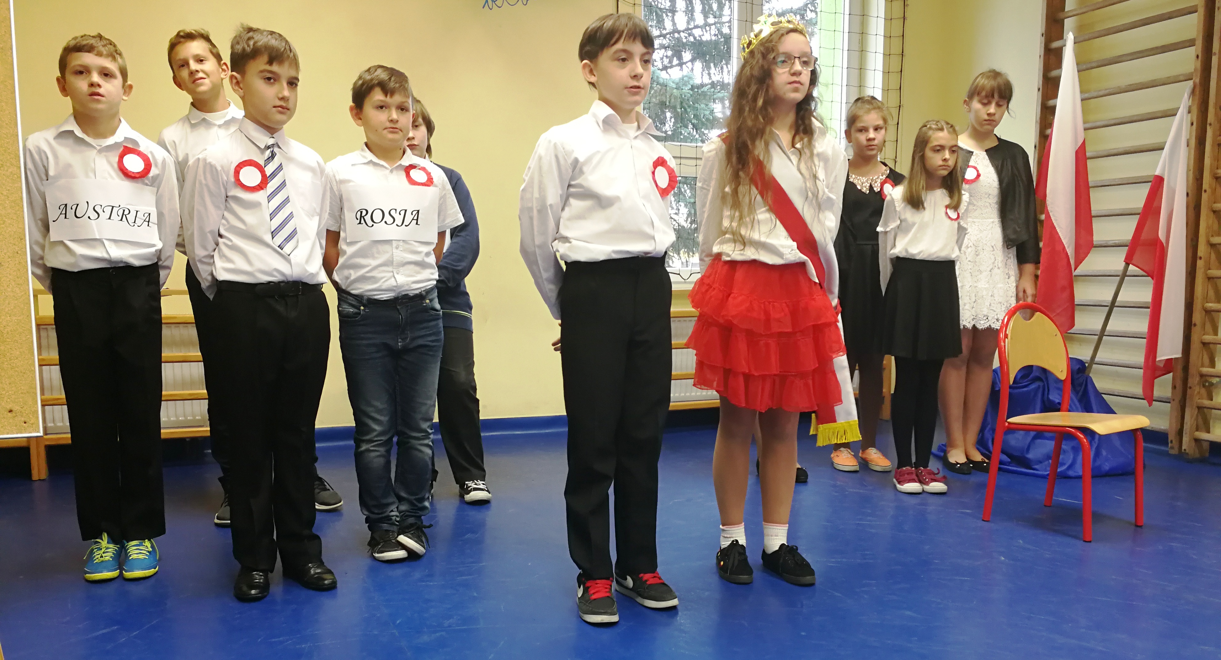 13 listopada uczniowie klasy VI, V i IV, podczas szkolnej akademii, przypomnieli naszej szkolnej społeczności o 99 rocznicy odzyskania przez Polskę niepodległości. Rozpoczęliśmy od wprowadzenia pocztu sztandarowego i odśpiewania Hymnu Państwowego. Następnie młodzi aktorzy przypomnieli najważniejsze wydarzenia, jakie miały miejsce podczas 123 lat niewoli. Całość przedstawienia uzupełniła recytacja wierszy oraz pieśni patriotyczne. Inscenizacja okazała się wspaniałą lekcją historii.